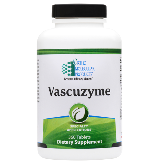 Vascuzyme is a comprehensive, multi-enzyme formula in an enteric-coated tablet for targeted release. The enzymes in Vascuzyme help support normal vessel function and promote recovery from exercise and physical stress.
